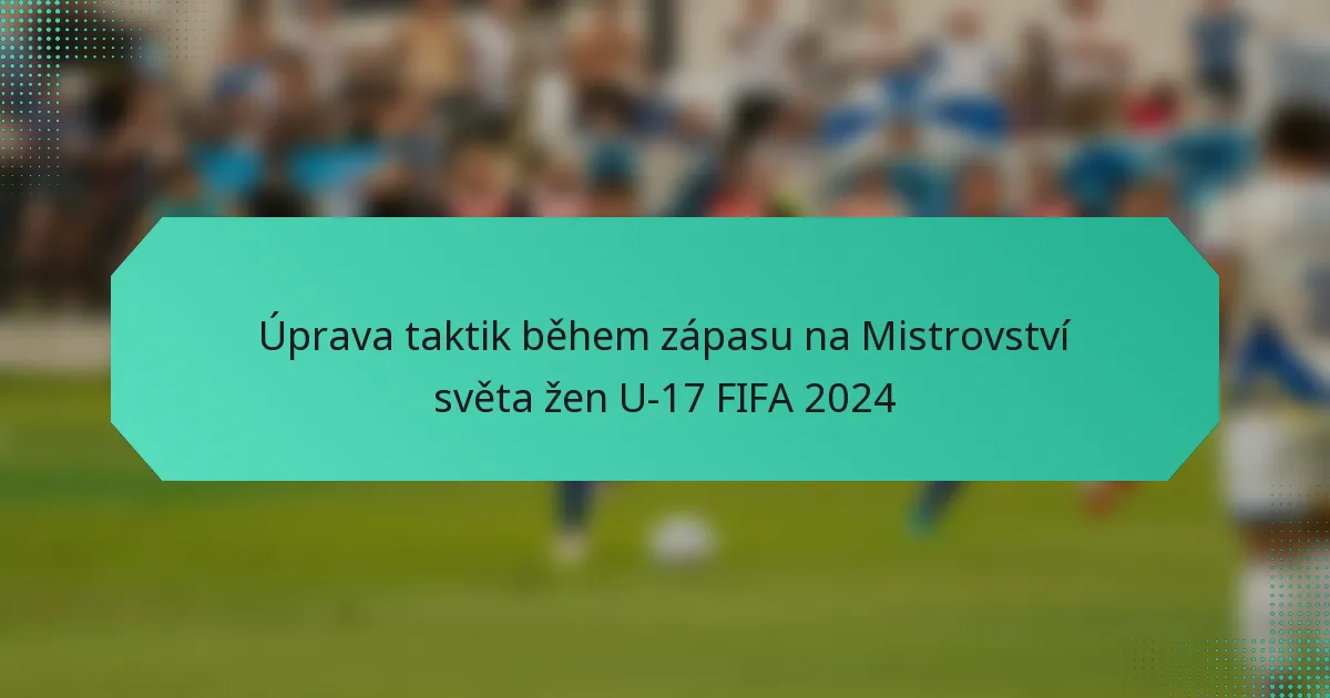 Klíčové taktické úpravy v zápasech Mistrovství světa žen do 17 let FIFA 2024 zahrnují strategické úpravy formací, střídání hráčů a taktické změny během hry. Trenéři a týmy reagují dynamicky na průběh zápasu, s cílem optimalizovat výkon na základě strategií soupeře a aktuálních podmínek zápasu.
